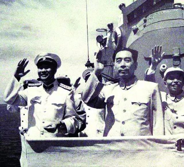1957年8月4日9時(shí)許,蕭勁光大將陪同周總理來(lái)到了海軍碼頭。海軍駐青部隊、機關(guān)、軍校的軍官們排成莊嚴整齊的隊形接受檢閱,“總理好!”的問(wèn)候聲響徹云霄。檢閱完軍官方隊,周總理等上一艘木殼魚(yú)雷快艇駛出大港。一艘艘艦艇和潛艇整整齊齊地排列著(zhù),接受總理的檢閱。閱兵式歷時(shí)兩個(gè)多小時(shí)圓滿(mǎn)結束。